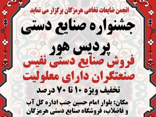 جشنواره صنایعدستی پردیس هور با هدف حمایت از هنرمندان دارای معلولیت و توسعه بازار فروش محصولات صنایعدستی در بندرعباس برپا میشود. معاون صنایعدستی ادارهکل میراثفرهنگی، گردشگری و صنایعدستی هرمزگان گفت: این جشنواره از ۱۹ مهر تا اول آبانماه برگزار میشود. ساناز رمجی افزود: صنایع همچون گلیم، حصیربافی، سفال و معرق با تخفیف ویژه ۱۰ تا […]