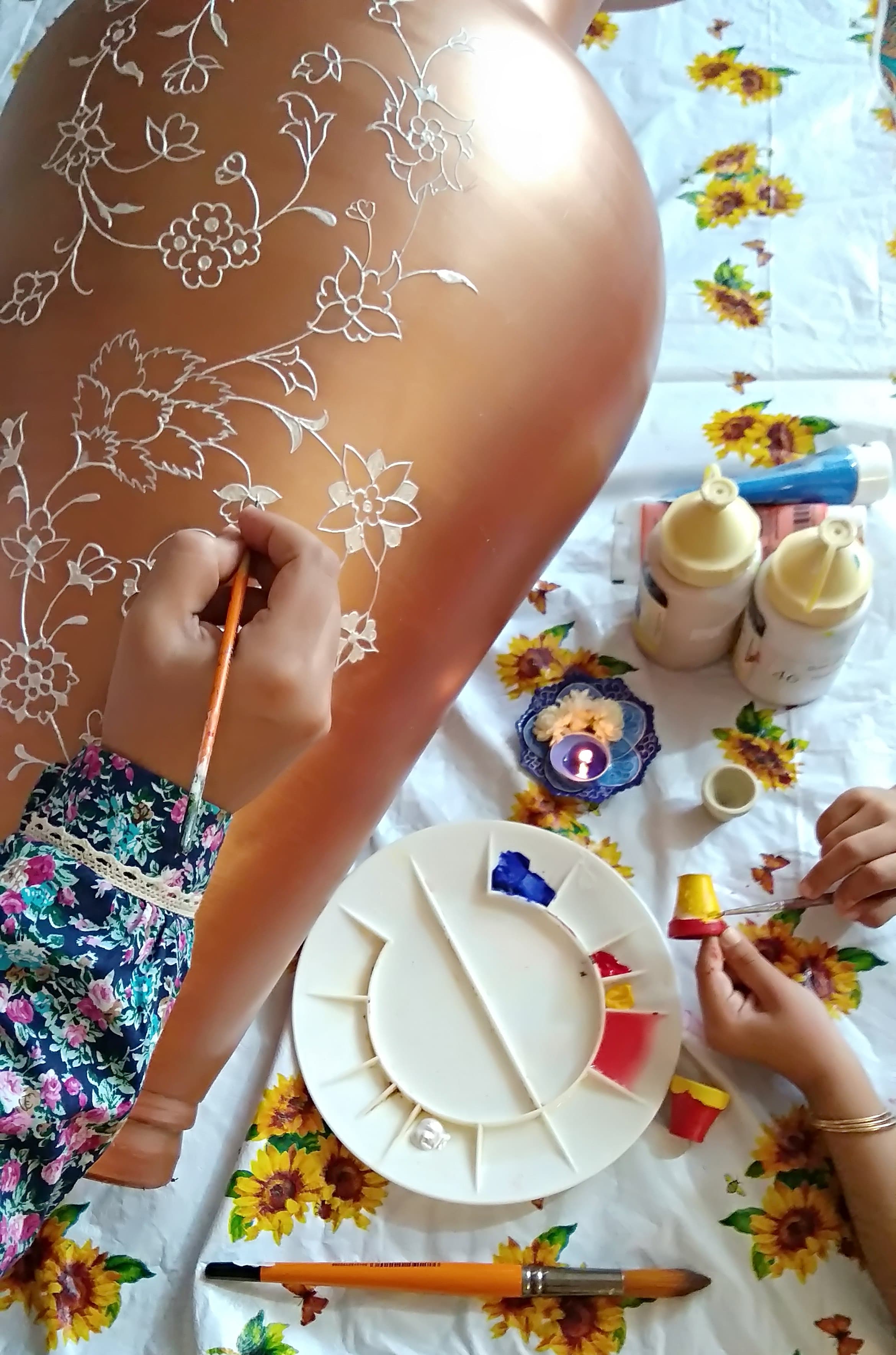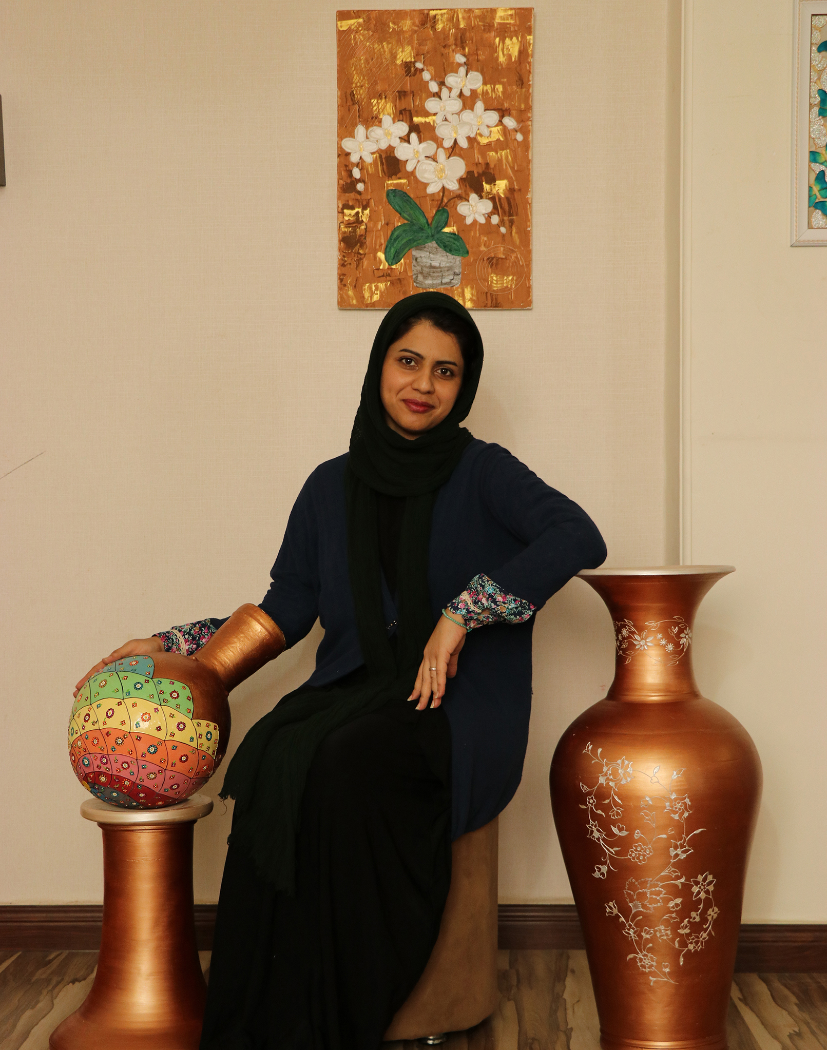 بعد از فروش عید به فکر پیشرفت در کارم بودم و به خاطر محدودیت در آموزش و دسترسی به مواد اولیه مناسب که در شهر بود تصمیم گرفتم مواد اولیه را از شهرهای دیگر تهیه کنم و دورههای آموزشی را بهصورت مجازی طی کنم. نقاشی روی سفال و چوب را تجربه کردم و نقاشی روی شیشه را بهصورت حرفهای انجام میدهم . روی انواع ظروف ،جهله و تمام اجسامی که به نظر من با نقاشی شدن نمای بهتری پیدا میکنند این کار را انجام میدهم.