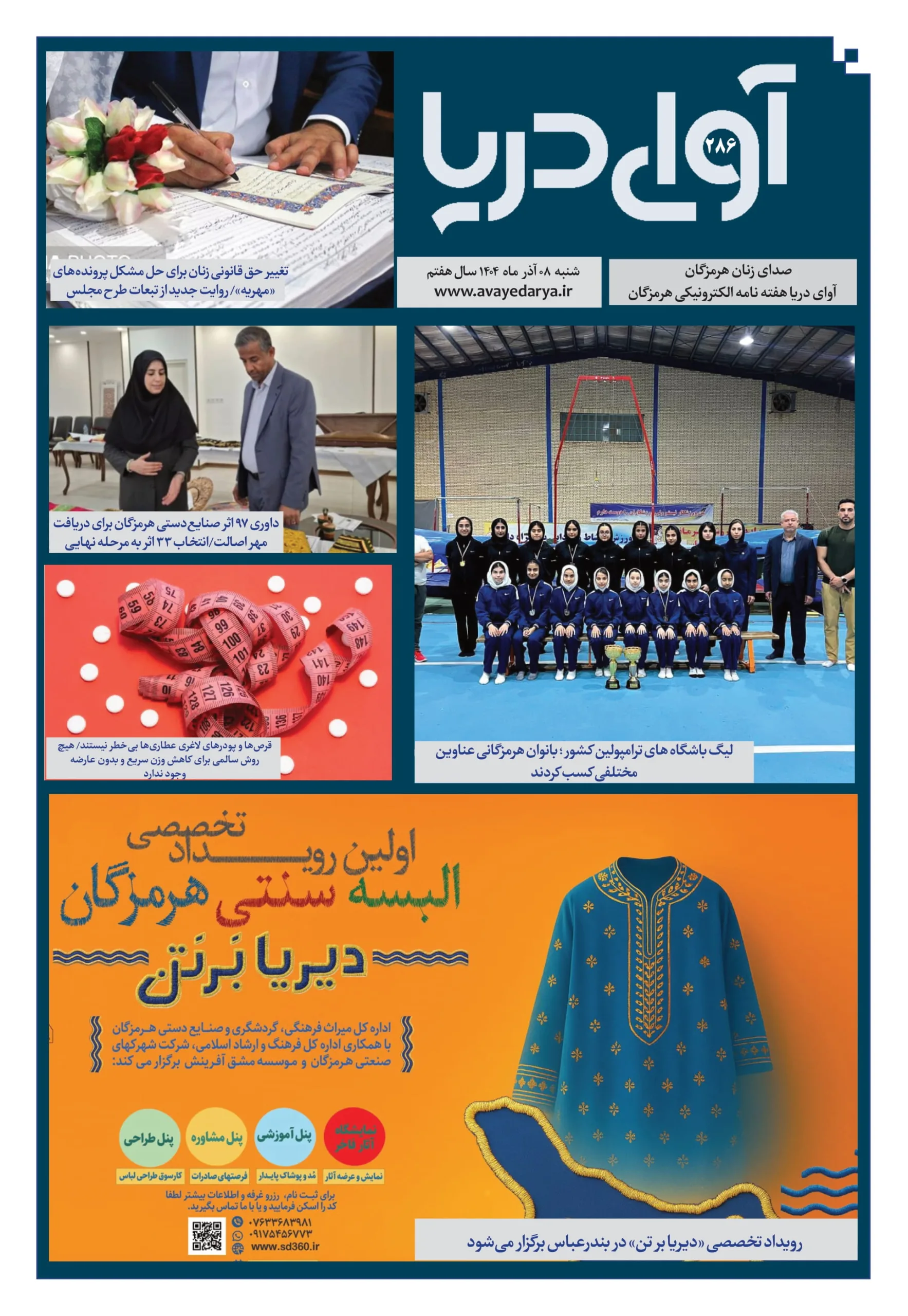 شماره ۲۸۶ ، شنبه ۰۸ آذرماه ۱۴۰۴